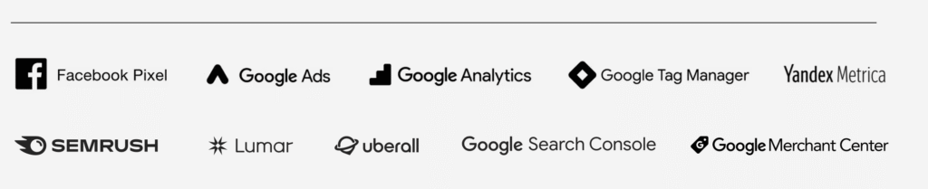 Connect to market-leading tools and integrations, like Google Ads, Google Tag Manager, Facebook Catalog, Yandex Metrica, and more to drive traffic, sales, and measure your online campaigns.